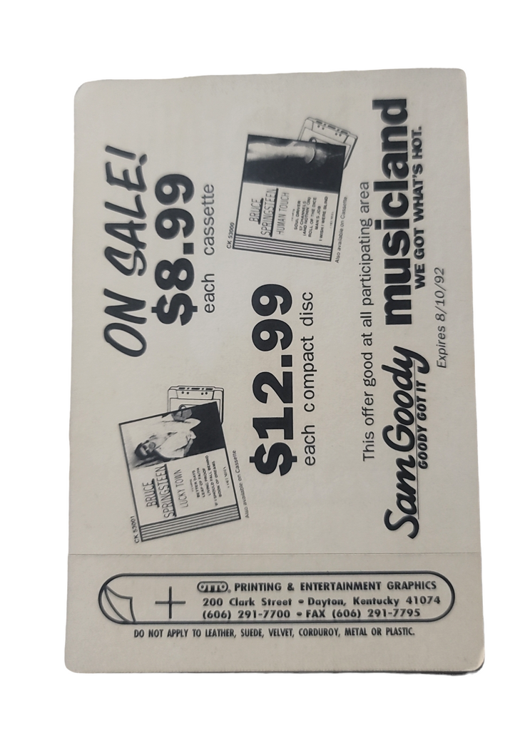 Bruce Springsteen Radio Promo Lucky Town World Tour 1992 Backstage Pass